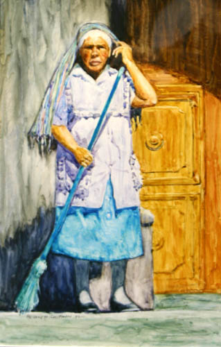 "Sweeping the Cathedral Steps" | 14" x 9 1/4"